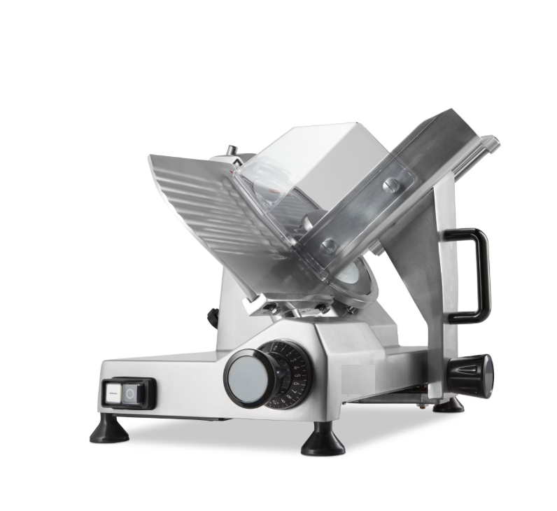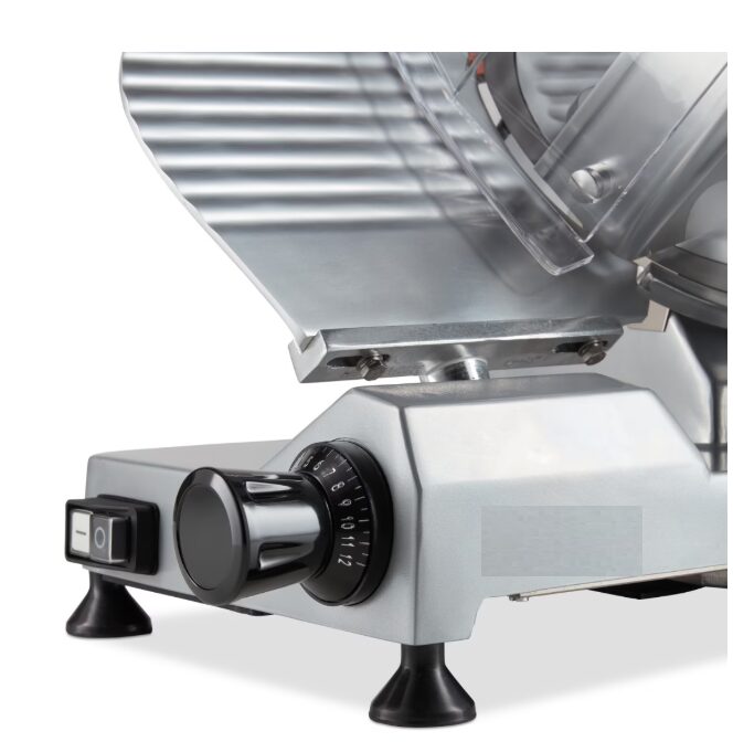 Das Schneiden von geraden und dünnen Scheiben ist von Hand oft mühsam. Mit dieser professionellen elektrischen Aufschnittmaschine gelingt es mühelos, nicht nur Fleisch, sondern auch andere Lebensmittel in perfekt gleichmäßige Scheiben zu schneiden. Die mitgelieferte Klinge ist speziell für Fleisch geeignet. Für weitere Anwendungen bieten wir optionales Zubehör wie eine teflonbeschichtete Klinge für Käse und eine gezackte Klinge für Brot an. Das Schneiden mit diesem vielseitigen Gerät ist einfach, präzise und leise. Die gehärtete Edelstahlklinge mit einem Durchmesser von 22 cm ermöglicht eine Schnittstärke von 1 bis 12 mm, sodass Wurst, Schinken, Salami und andere Fleischsorten stets gleichmäßig geschnitten werden.