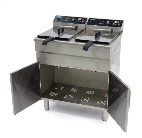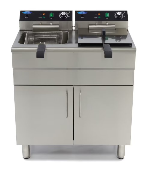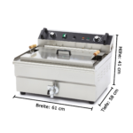 Dank der Ölablasshähne wird der Ölwechsel besonders einfach und hygienisch. Der integrierte Edelstahl-Unterschrank bietet zusätzlichen Stauraum, sodass die Fritteuse nicht nur leistungsstark, sondern auch platzsparend ist.