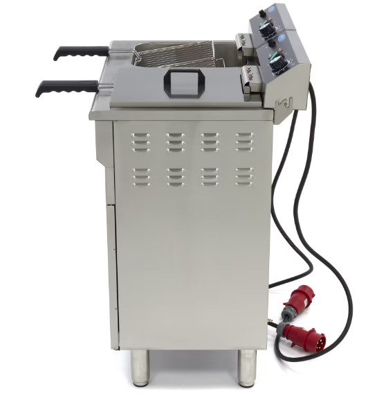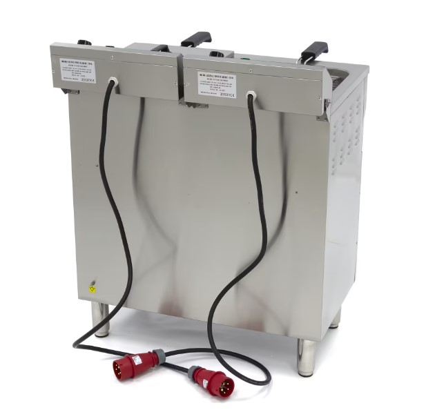 Diese professionelle Doppel-Fritteuse ist speziell für den intensiven Einsatz in der Gastronomie konzipiert. Mit zwei Becken 16 Litern lassen sich große Mengen Pommes, Snacks, Fisch oder Gemüse gleichzeitig zubereiten.