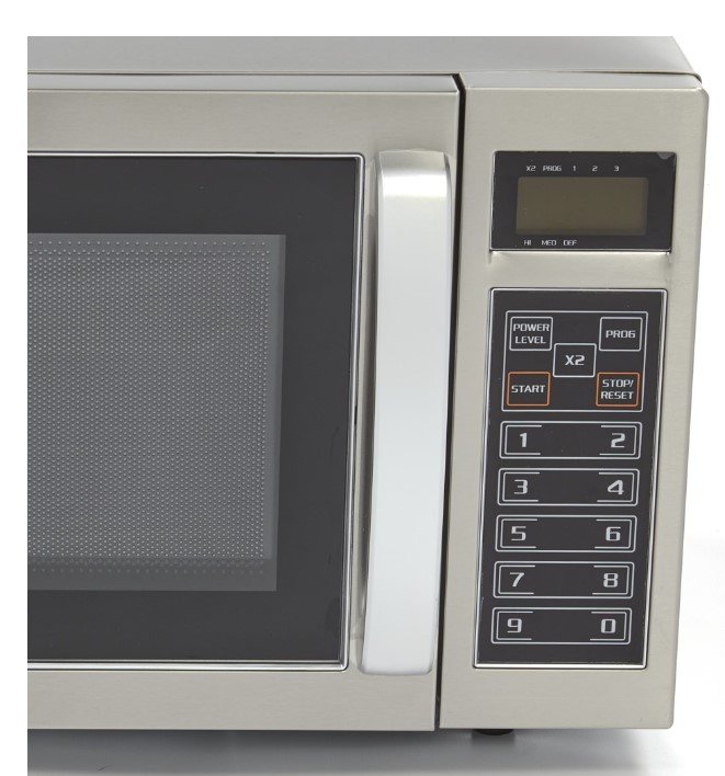 Bei dieser professionellen Mikrowelle können Sie aus 20 vorprogrammierten Programmen wählen. Die Mikrowelle verfügt außerdem über drei verschiedene Leistungsstufen: Auftauen = 30%, Mittel = 80% und Hoch = 100%. Die Mikrowelle ist für Teller mit einem Durchmesser von 32 cm und 1/2 GN (Kunststoff)-Geschirr oder kleiner geeignet. Das Bedienfeld ist leicht zu bedienen und übersichtlich. Außerdem verfügt es über einen digitalen Timer, damit Sie immer wissen, wie lange die Produkte in der Mikrowelle bleiben. Dieser Mikrowellenherd ist für den gewerblichen und gastronomischen Einsatz geeignet.