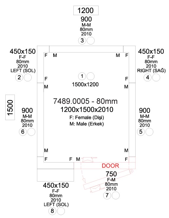 - Tür, Türresistenz, Türswitch-Taste, Türriegel und Türdichtung