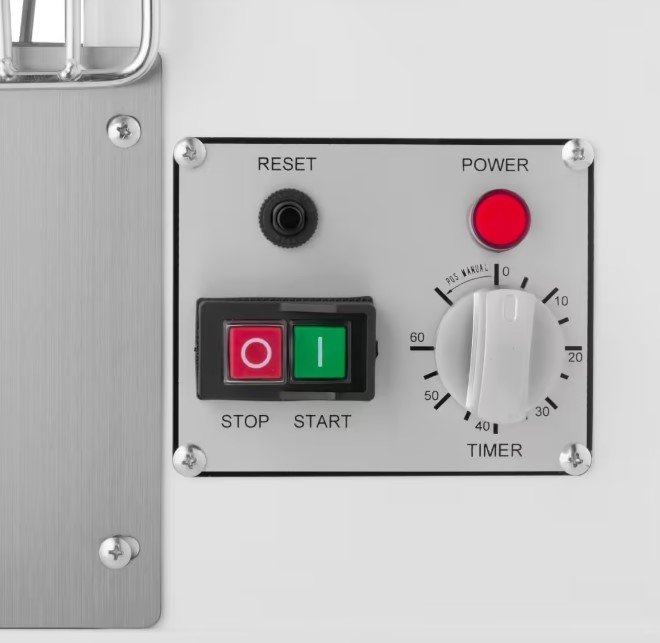 Dank des Sicherheitsschalters können Sie sich darauf verlassen, dass Ihre Sicherheit bei der Arbeit mit diesem Teigkneter gewährleistet ist und dass der Motor nicht überhitzen wird. Der Mixer ist mit einem Sicherheitskäfig ausgestattet, der die Rührschüssel verschließt. Wenn der Käfig nicht vollständig geschlossen ist, lässt sich die Maschine nicht starten. Das gilt auch, wenn der Mixtopf mit Zutaten überfüllt ist. Der Mixer schaltet sich automatisch ab.