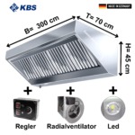 Premium Wandhaube- 300 x 70 cm – mit Motor, Regler, Filter & Lam...Wandhaube – 260 x 70 cm – mit Flammschutzfilter & Lampe